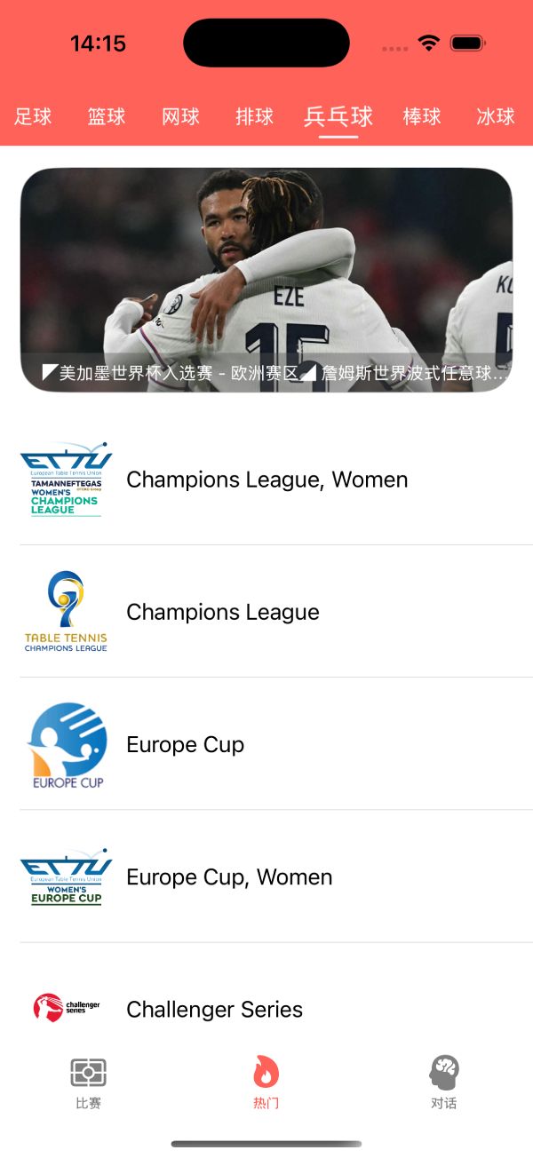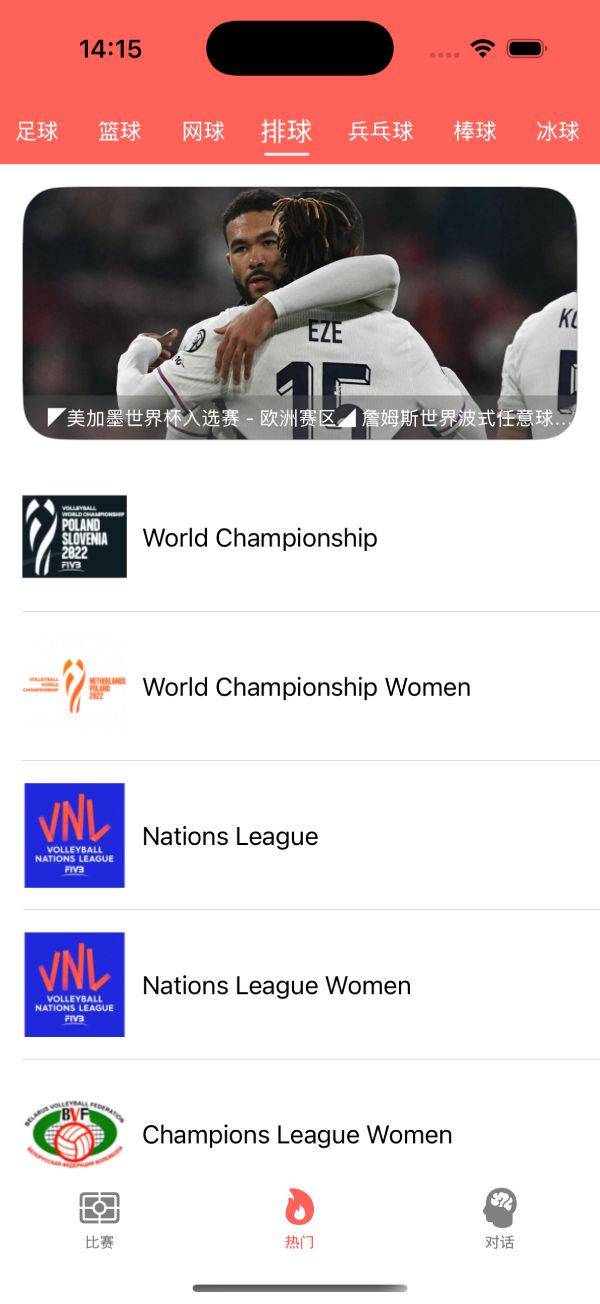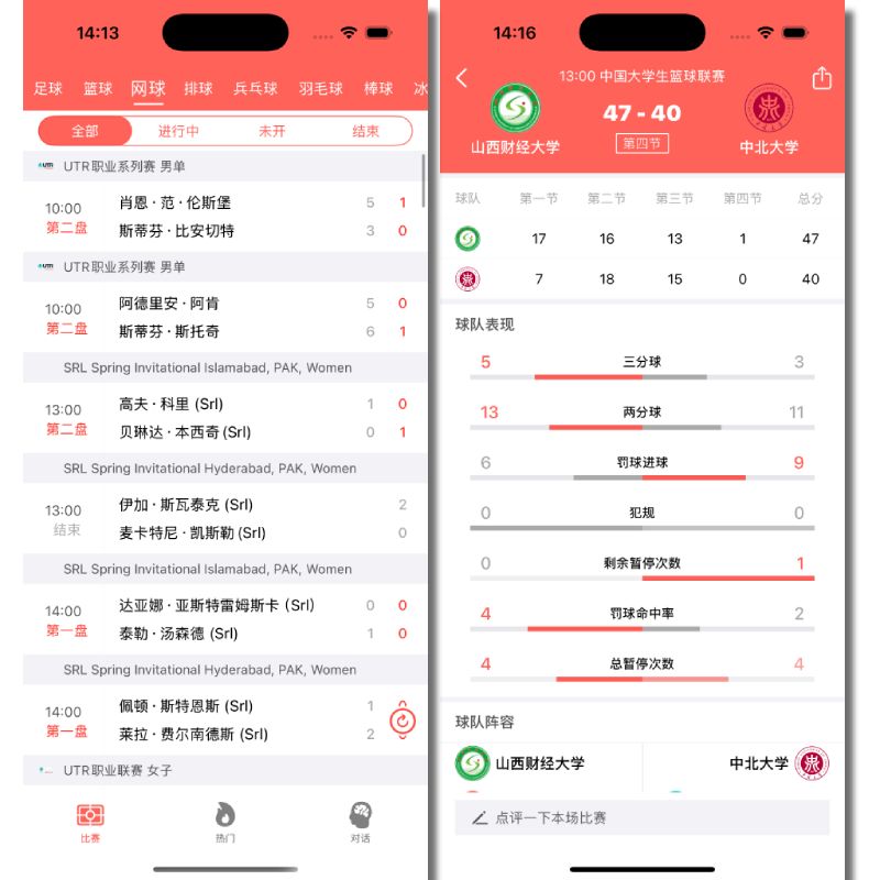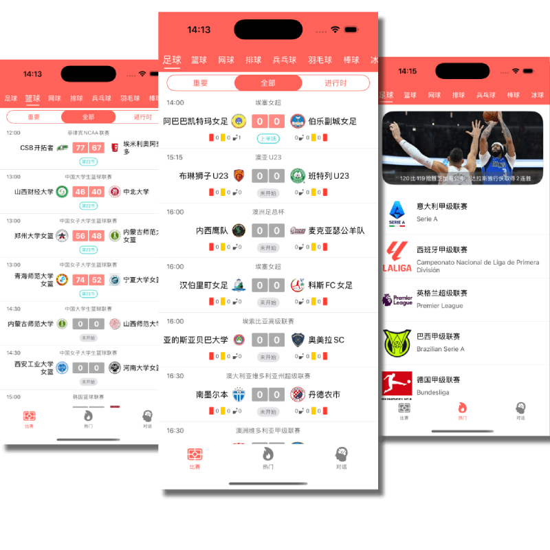 以及 赛事选择的界面,方便用户选择自己感兴趣的比赛。