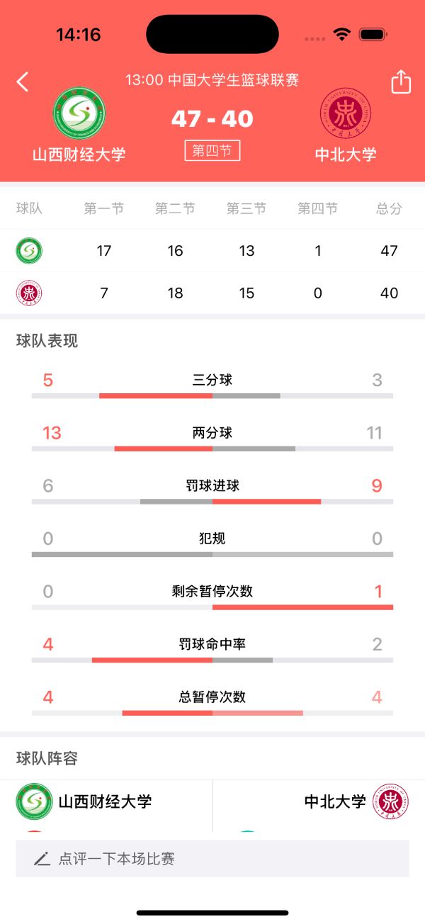 APP展示实时比分直播的界面,突出显示比分和关键事件,